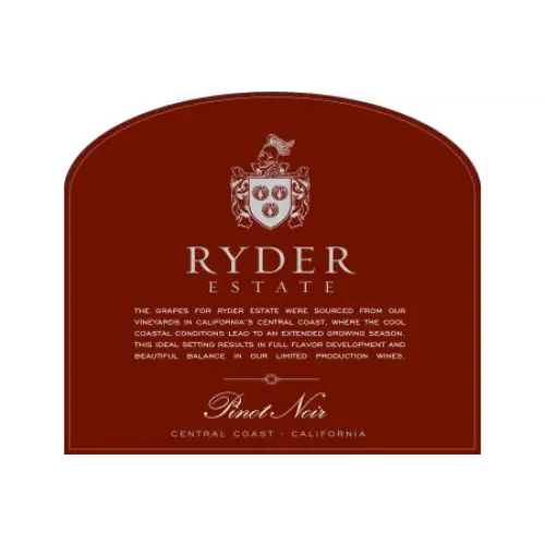 Our Ryder Estate Pinot Noir delivers aromas of black cherries, pomegranates, plums and toasty vanilla. The flavors are lush and silky with undertones of raspberry, cherry and rhubarb fruit on the palate that lead into a supple, lithe finish.