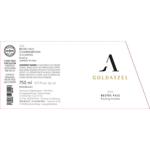 Goldatzel Riesling Spätlese Johannisberger Bestes Fass Trocken is a White Wine from Rheingau, Germany