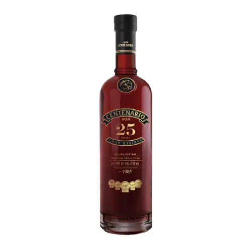 Centenario 25 is a blend of rums aged in white American oak for up to 25 years in a traditional solera system. Only very slightly sweeter than the 18, this rum has a dynamic and earthy flavor profile highlighting ginger root, ginger snaps, pressed green apple, eucalyptus oil, hints of camphor, menthol, and herbaceous lemongrass. The finish shows Bartlett pears in syrup, crรจme de cassis, jasmine green tea, and a balanced tannic cask presence. Superb neat or with spring water.
