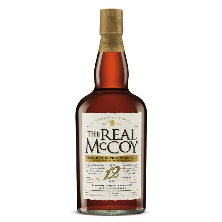 The Real McCoy Prohibition Tradition 12 Year Aged Rum is a Limited Edition of 6000 bottles of 100 proof rum honoring the 100th anniversary of Bill McCoy's legendary Prohibition rum running in 1920 The Real McCoy Rum is based on the story of Bill McCoy, the pioneer rum runner of the Prohibition era. In January of 1920, McCoy was the first to fill a boat with alcohol in the Caribbean, sail it up to New York City, and legally act as a floating liquor store three miles off shore. McCoy was careful to always stay outside the three mile limit, which was international waters in the early days of Prohibition in America. McCoy made a name for himself because he never adulterated the alcohol.
