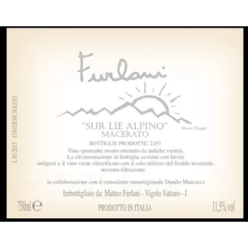 Cantina Furlani Sur Lie Alpino Macerato is a Sparkling White from Trentino-Alto Adige, Italy