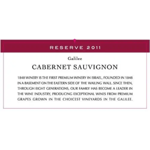 1848 Winery Galilee Cabernet Sauvignon Reserve is a Red Wine from Galilee, Israel