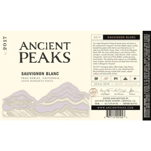 Ancient Peaks Winery Sauvignon Blanc Santa Margarita Ranch is a White Wine from California, United States.