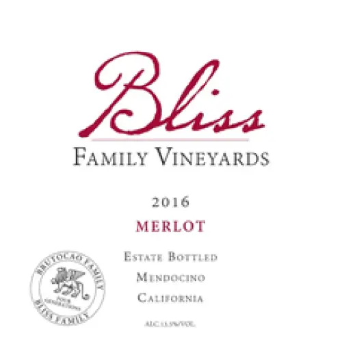 Bliss Family Vineyards Merlot Estate Bottled Mendocino is a Red Wine from California, United States