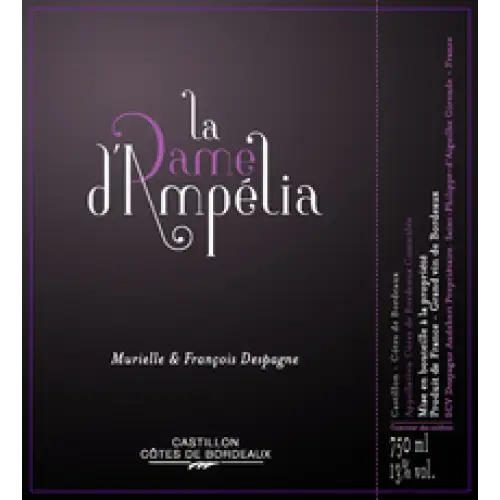 Château Ampelia Dame d'Ampelia Castillon Côtes de Bourdeaux is a Red Wine from Bordeaux, France