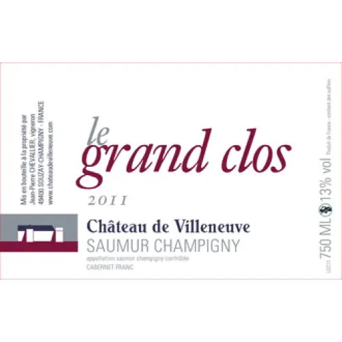 Château de Villeneuve Saumur-Champigny Le Grand Clos is a Red Wine from Loire Valley, France