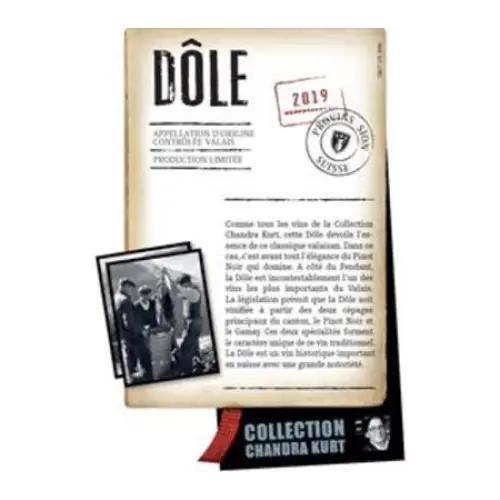 The Dรดle is the newest wine of the limited Chandra Kurt Collection range. The Dรดle is like the Fendant one of the most important wines of the region and the result of the blend of Pinot Noir and Gamay. This medium bodied red is dry with good minerality and reveals notes of wild strawberries, plums, laurels and some cloves. Its tannins are very fine and firm and its harmony is a real treat for the palate. A fresh red wine that goes well with cheese, meat, fish, poultry and of course dried meat.