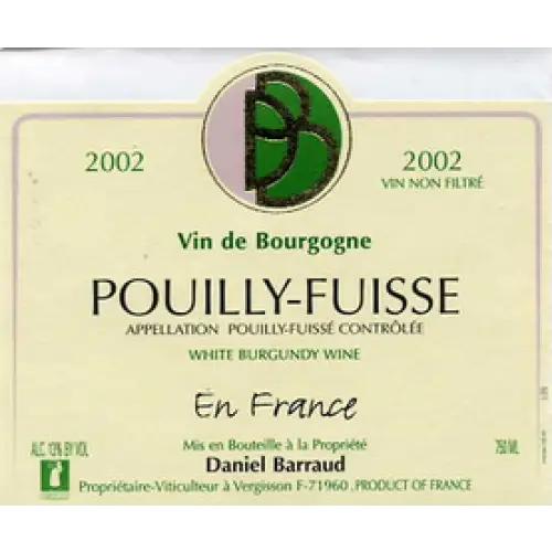 Daniel et Julien Barraud Pouilly-Fuissé En France is a White Wine from Burgundy, France