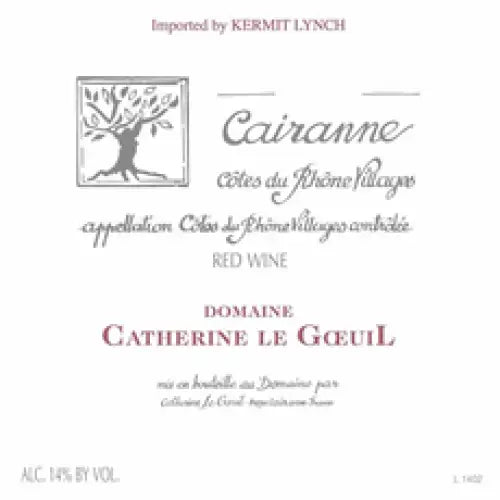 Domaine Catherine Le Goeuil Côtes du Rhône Cairanne 2014 is a Grenache, Syrah, Mourvedre, Carignan, and Counoise from Rhône Valley, France