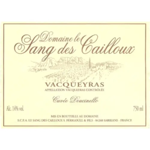 Domaine le Sang des Cailloux Vacqueyras Rouge is a Grenache and Syrah from Rhรดne Valley, France