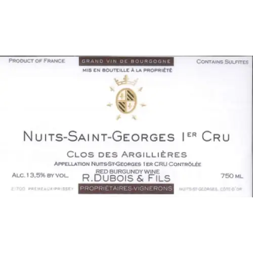 Domaine Raphael Dubois Nuits-Saint-Georges 1er Cru Clos des Argillieres 2019 is a Red Wine from Burgundy, France