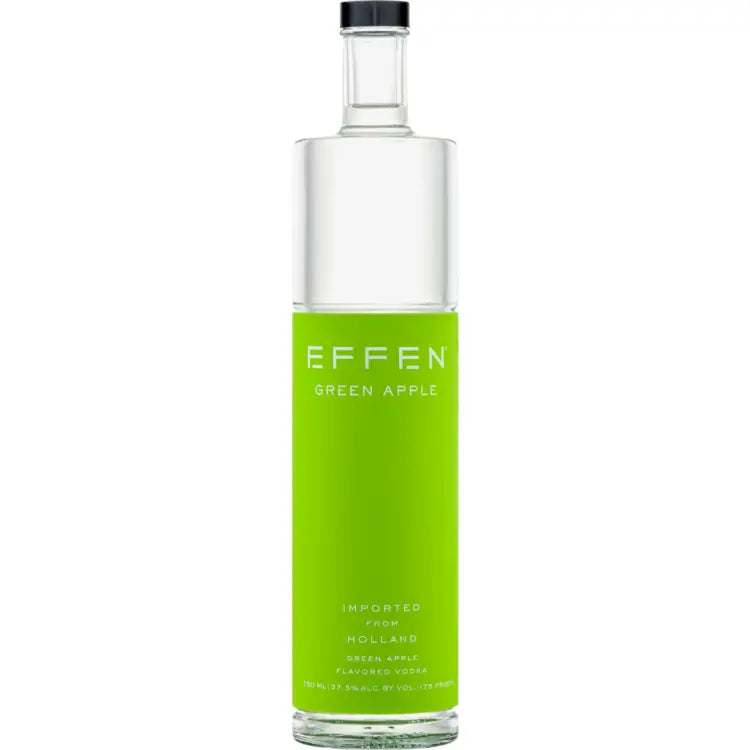 Effen Green Apple Vodka combines the clean, crisp flavors of green apple with an accent of tartness EFFEN Vodka is a super-premium vodka whose name means 'smooth' in Dutch. Inside a bottle of original or flavored EFFEN Vodka you'll find a light, crisp vodka experience. Made from premium French wheat, EFFEN Vodka uses a continuous distillation process, along with natural ingredients to create a smooth taste on the palate. Designed by bartenders for bartenders, this smooth and vibrant vodka is the perfect base for mixing cocktails.
