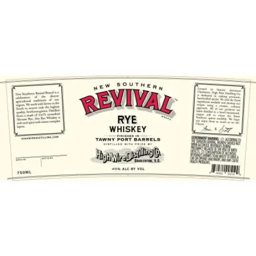 High Wire Distilling Company New Southern Revival Rye Whiskey Finished In Tawny Port Barrels is a Whiskey from South Carolina,United States