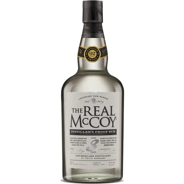The Real McCoy 3 Year Aged Distiller's Proof Single Blended Silver Rum is smooth with a long and warm finish, delivering subtle spice and coconut notes that make it perfect for premium rum cocktails The Real McCoy Rum is based on the story of Bill McCoy, the pioneer rum runner of the Prohibition era. In January of 1920, McCoy was the first to fill a boat with alcohol in the Caribbean, sail it up to New York City, and legally act as a floating liquor store three miles off shore. McCoy was careful to always stay outside the three mile limit, which was international waters in the early days of Prohibition in America. McCoy made a name for himself because he never adulterated the alcohol.